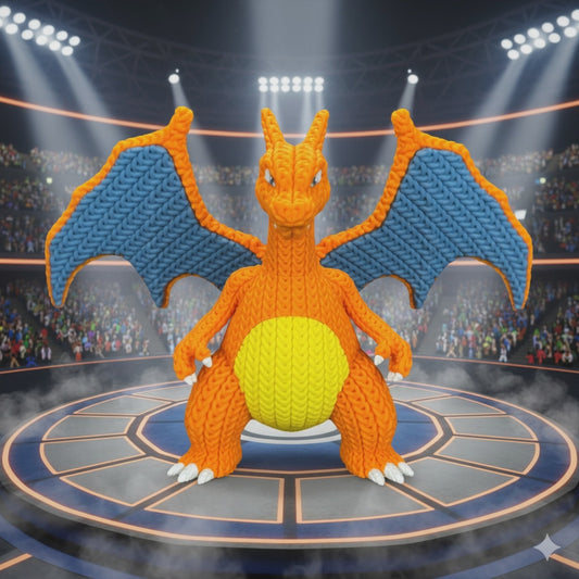 Charizard Stile Crochet – Statua 3D Artigianale Pokémon da Collezione
